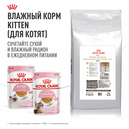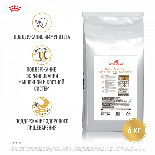 Предоставив котенку лучшее питание в период роста, Вы обеспечите ему здоровье и долголетие в будущем. Для поддержания гармоничного роста и здорового развития котенка рацион ROYAL CANIN® British Shorthair Kitten (Корм для котят породы британская короткошерстная) содержит оптимальное количество всех питательных веществ, включая белки и такие минеральные вещества как кальций и фосфор, которые необходимы ему для правильного развития опорно-двигательного аппарата и формирования сильной мускулатуры.