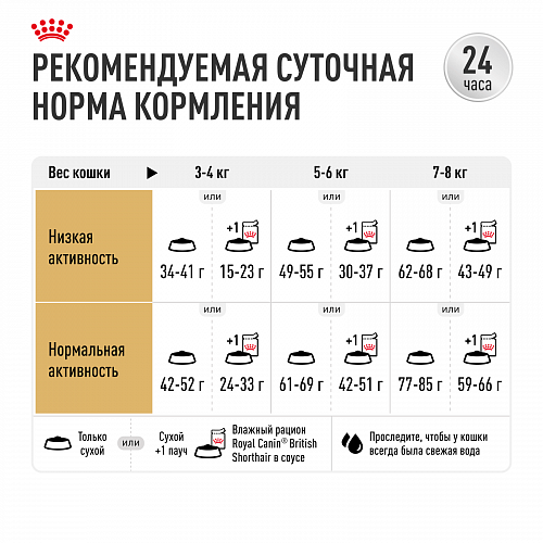 Рацион BRITISH SHORTHAIR Kitten (Корм для котят породы британская короткошерстная) учитывает особые потребности котят этой породы и способствует: поддержанию гармоничного развития и набору мышечной массы; развитию иммунной системы котенка; поддержанию развития мозга, благодаря содержанию DHA (ДГК); поддержанию оптимального пищеварения; 100% полнорационное и сбалансированное питание.