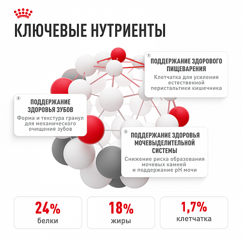 Адаптированная формула Здорового питания способствует повышению качества и продолжительности жизни собаки. Поддерживает нормальный кишечный транзит у миниатюрных собак, склонных к запорам. Способствует здоровью кожи и шерсти. Разработано для поддержания физиологического рН мочи и здоровья мочевыводящих путей. Поддерживает здоровье зубов при миниатюрных размерах челюстей 100% полнорационное и сбалансированное питание.