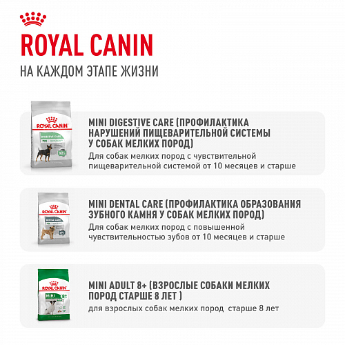Cухой корм для собак в возрасте c 10 месяцев до 8 лет. ROYAL CANIN® Mini Adult (Корм для взрослых собак мелких пород) специально разработан для собак мелких пород (весом от 1 до 10 кг).