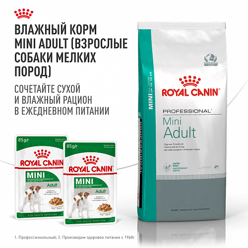 ROYAL CANIN® Mini Adult (Корм для взрослых собак мелких пород) предназначен для собак мелких пород (весом до 10 кг) старше 10 месяцев и разработан с учетом потребностей взрослой собаки в питательных веществах. Собаки мелких пород отличаются высокой потребностью в энергии, поэтому продукт ROYAL CANIN® Mini Adult (Корм для взрослых собак мелких пород) содержит достаточное количество жиров и L-карнитин, которые помогают животному поддерживать высокий уровень энергии, и при этом сохранять оптимальный вес.